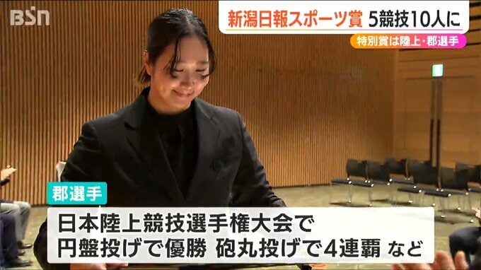 特別賞に選ばれたのは、「サトウ食品新潟アルビレックスランニングクラブ」に所属する、陸上の郡奈々佳(こおりななか)選手です。