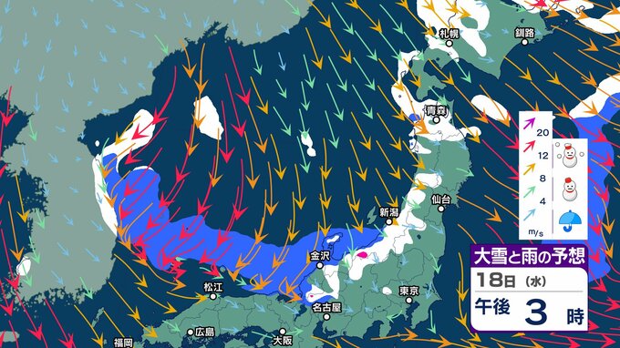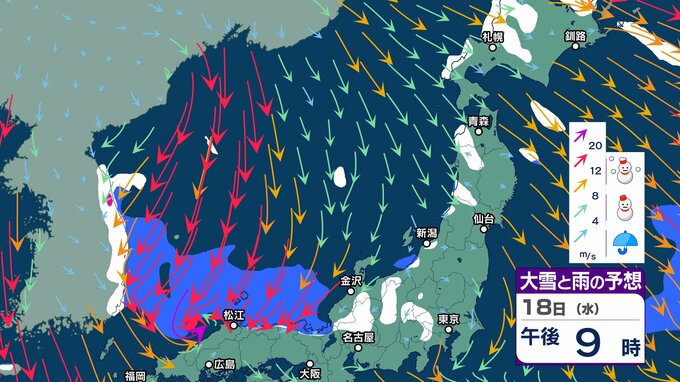 18日夜から西日本の平地でも積雪か 山地は大雪…道路交通への影響に注意【大雪と雨のシミュレーション 3時間ごと】ノーマルタイヤで雪道走行しない チューリップテレビ 2024年12月18日(水) 15:45 国内 天気 大雪と雨のシミュレーション 18日(水)