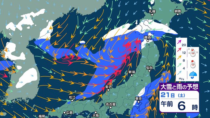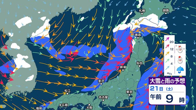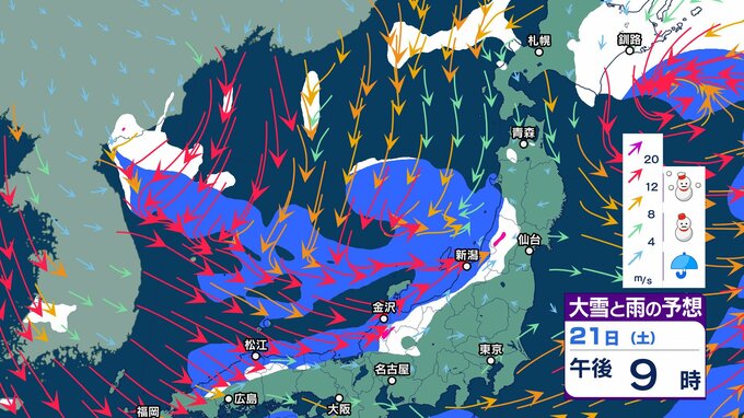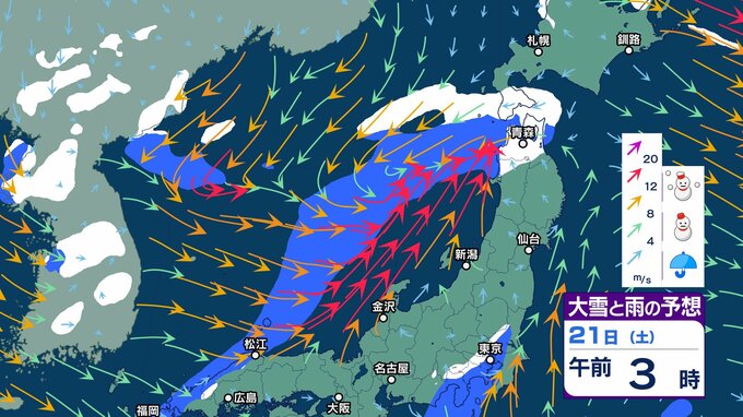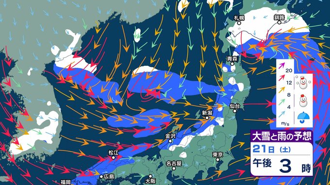18日夜から西日本の平地でも積雪か 山地は大雪…道路交通への影響に注意【大雪と雨のシミュレーション 3時間ごと】ノーマルタイヤで雪道走行しない チューリップテレビ 2024年12月18日(水) 15:45 国内 天気 大雪と雨のシミュレーション 21日(土)