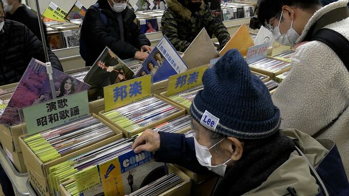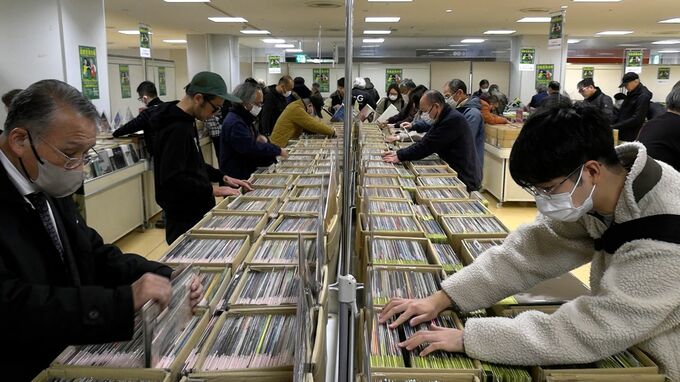 会場では演歌やジャズなど様々なジャンルの商品、約3万点が販売され、多くの客で賑わっています。