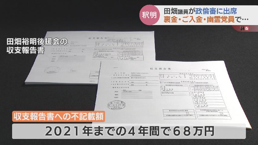 田畑議員はことし1月、旧安倍派が政治資金パーティー券の販売収入の一部を所属議員側にキックバックしていた問題で、収支報告書への不記載が発覚。不記載額は2021年までの4年間で68万円にのぼりました。