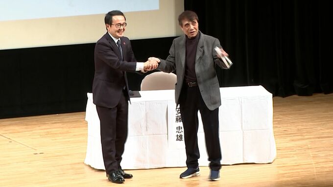 発案者は世界的建築家の安藤忠雄さんです。発表会には安藤さん【画像①】と、香川県の池田知事が登壇しました。