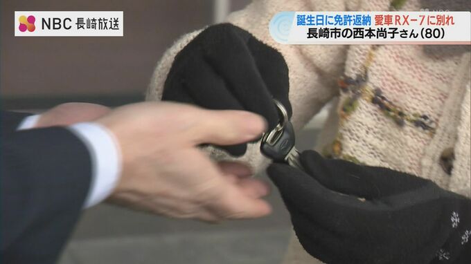 誕生日の18日、長崎市の「マツダ」で記念のセレモニーが行われ、西本さんは愛情を注ぎこんできた愛車とそのカギを引き渡しました。