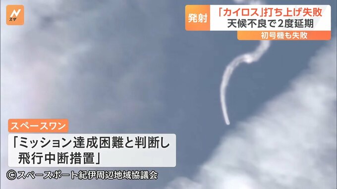 民間の小型ロケット「カイロス」が和歌山県で打ち上げられました。しかし、直後に「飛行中断」。打ち上げは失敗しました。