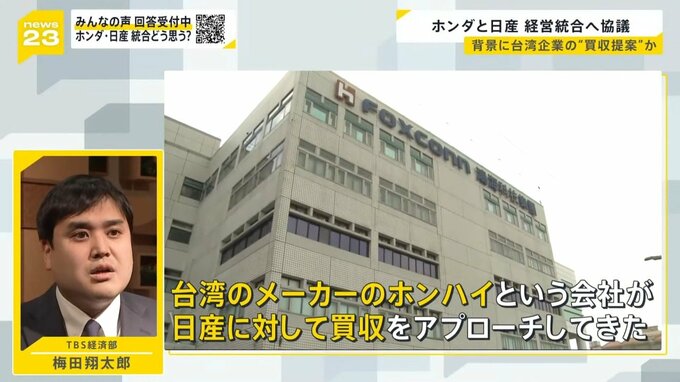 「台湾のメーカーのホンハイという会社が日産に対して買収をアプローチしてきた。そういったところから、ホンダが今回アクセルを踏んで、統合というふうに一気に進んでいったと」
