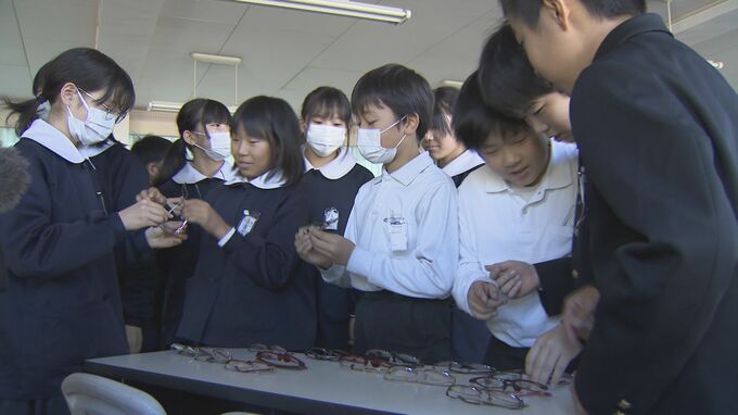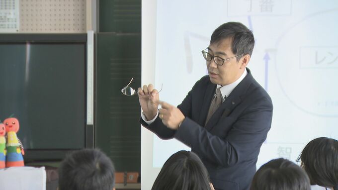 児童は実際にメガネをかけるなどして、興味深そうに特別授業を受けていました。