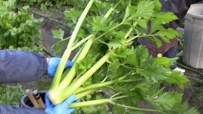 みずみずしく育ったセロリです。総社市西郡にあるそうじゃ地食べ公社のハウスできょう(19日)から出荷が始まりました。かつては100軒ほどあった山手地区の生産者は4軒にまで減りましたが、伝統の味を絶やすまいと品質にこだわった栽培が続けられ、今年も甘くて歯ごたえのあるセロリになったということです。