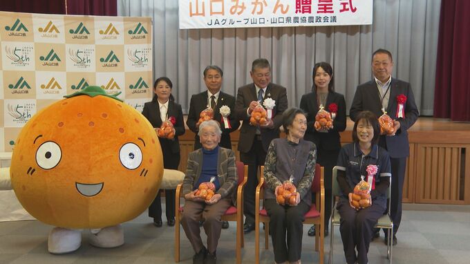 JAグループ山口が19日、年末年始に食べてもらおうと「山口みかん」を山口県内の老人福祉施設などに贈りました。