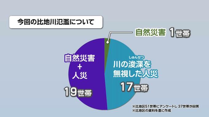 「人災」だと答えたのはアンケートに回答した37世帯の9割以上に上り、「浚渫の要望が無視されたことをどう思っているか」という質問に対しては、全ての世帯が「不満」だと回答したということです。