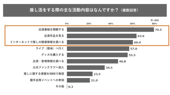 推し活の活動内容 1位は「出演番組の視聴」