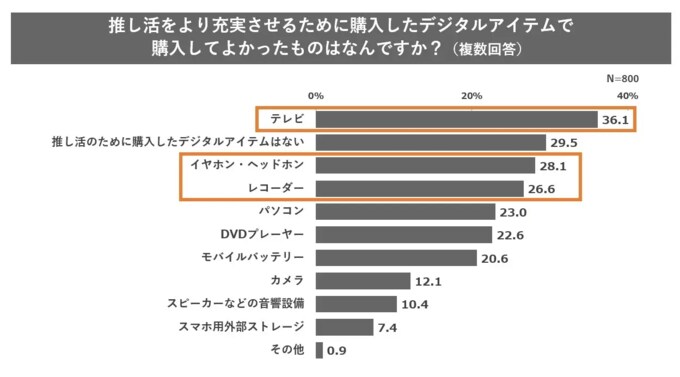 YouTubeやテレビ(地上波・BS・CS)で推しの映像を見る推し活を充実させるために購入したデジタルアイテムは何でしょうか。