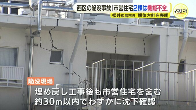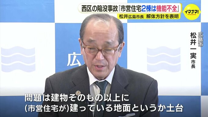 広島市の大規模な陥没事故で、松井市長は、被害を受けた市営住宅2棟を解体する方針を明らかにしました。