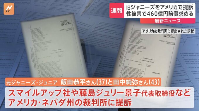 元ジャニーズJr.の男性2人がアメリカの裁判所で、旧ジャニーズ事務所に対し、460億円を超える損害賠償を求める訴えを起こしたことが分かりました。スマイルアップ社や藤島ジュリー景子代表取締役など旧ジャニーズ…
