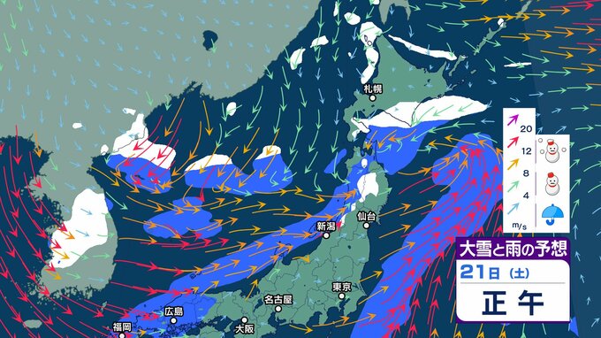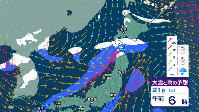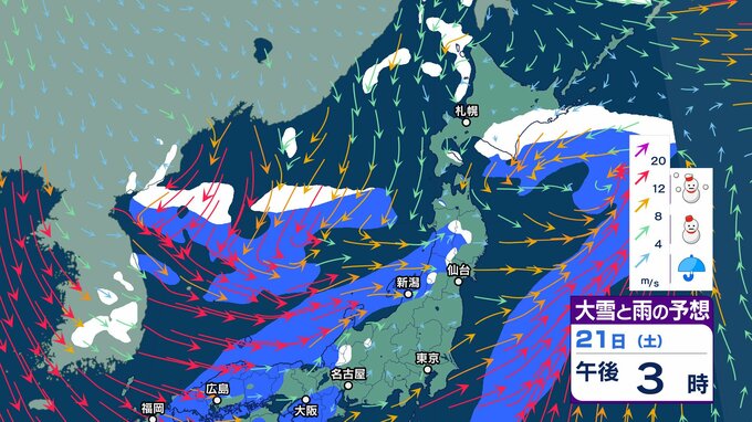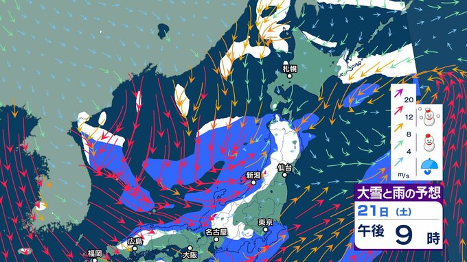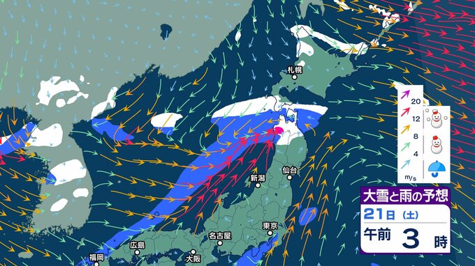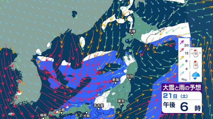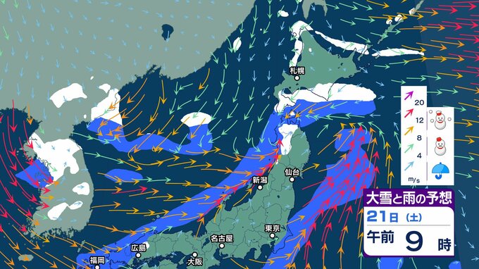 次の強烈寒波は22日頃から…上空約5500メートルに氷点下33度以下の寒気【 雪と雨のシミュレーション】大気の状態が非常に不安定へ 局地的に積乱雲の発達も チューリップテレビ 2024年12月20日(金) 07:38 国内 天気 大雪と雨のシミュレーション 21日(土)