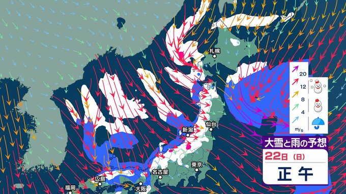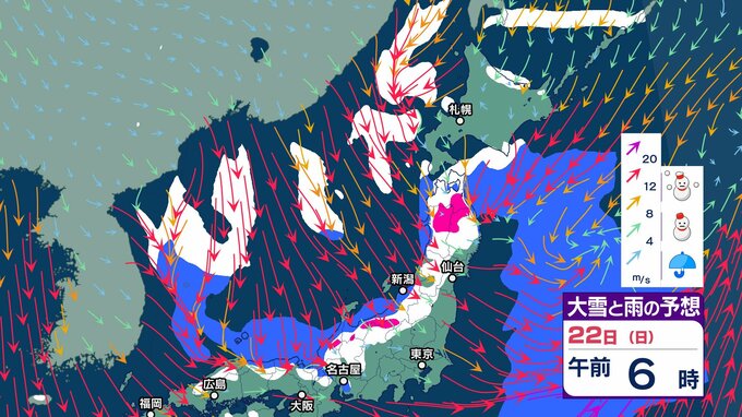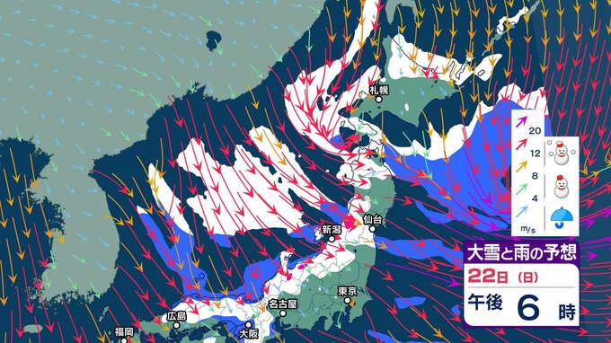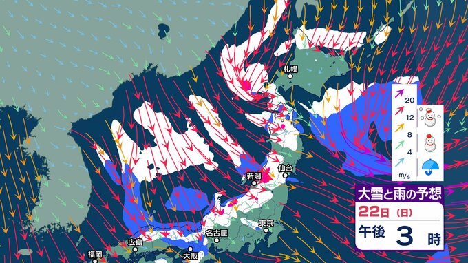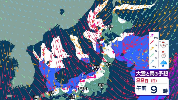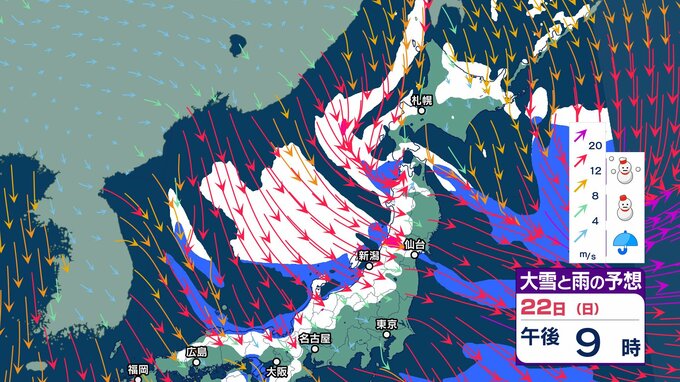 次の強烈寒波は22日頃から…上空約5500メートルに氷点下33度以下の寒気【 雪と雨のシミュレーション】大気の状態が非常に不安定へ 局地的に積乱雲の発達も チューリップテレビ 2024年12月20日(金) 07:38 国内 天気 大雪と雨のシミュレーション 22日(日)