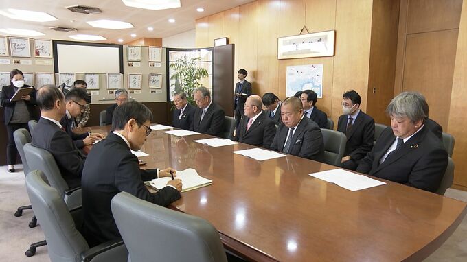 岡山商工会議所の松田久会頭と、4つの商工会の会長らが岡山市役所を訪れ、大森市長に要望書を手渡しました。要望書では、地域の中小企業にとってエネルギーや原材料価格の高騰、人手不足などが収益改善の足かせになっていると説明。この上で、新たな事業に意欲的に取り組む中小企業の設備投資を後押しするための補助制度の拡充など、3項目を求めています。