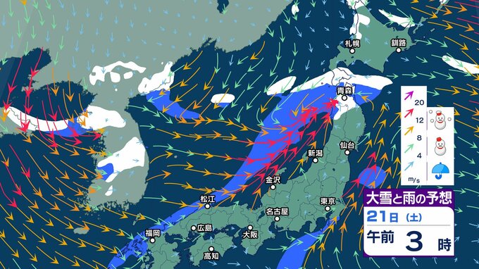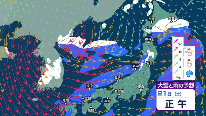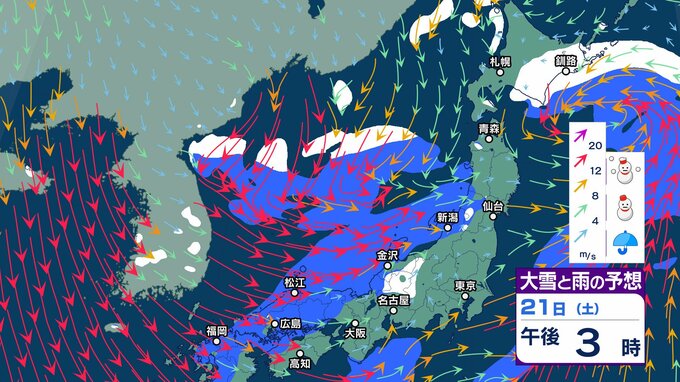 22日~23日は “警報級の大雪” の可能性…国交省も大雪の外出控えるよう呼びかけ【2週間天気】日本海側は荒れた天気 年末年始も厳しい寒さ【 雪と雨のシミュレーション】 チューリップテレビ 2024年12月20日(金) 15:21 国内 天気 大雪と雨のシミュレーション 21日(土)
