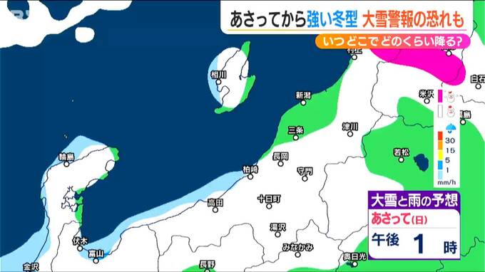 20日の新潟県内は久しぶりに青空も広がりましたが、それも今日までであすから再び冬型の気圧配置となり、大雨警報や大雪警報が発表される恐れもあります。いつ、どこで、どのくらい、雨や雪が降るのでしょうか。
