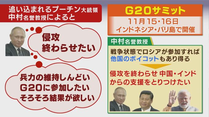 「そうなんですよ。だからプーチン大統領に焦りが増してきているということで、G20にはどうしても行きたいと」