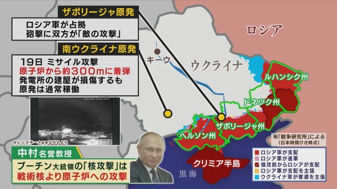 「そうですね。ですからプーチン大統領は『最終的に核使用もあり得る』と言っているんですね。そうすると、私達は『戦術核』とか頭にすぐ浮かぶんですけども、この中に実はこの原発を核使用の中に含まれてるんじゃないかということで、もしこれが爆発して南から南東の風が吹いたら、ポーランド、ドイツ、ハンガリーあたりまで何十年にもわたって被害が及ぶということです。プーチン大統領からすれば、『戦術核』を使って1つの都市を潰していくよりは、こうした復讐の方が実はヨーロッパに対して大きな打撃を与えると」