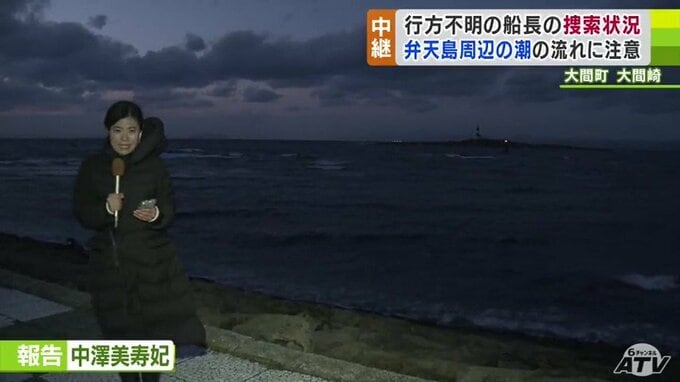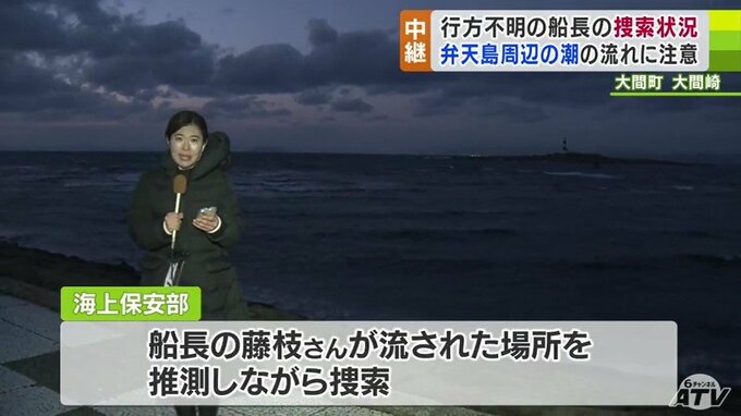 このため、海上保安部は、船長の藤枝さんが流された場所を推測しながら捜索を続けています。以上、現場から中継でお伝えしました。