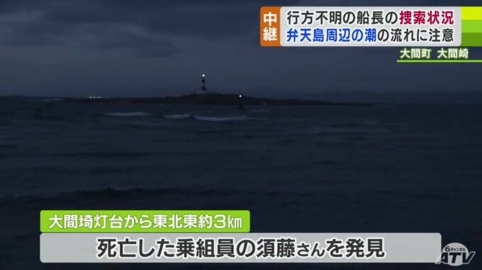 また、灯台から東北東に約3キロの海上で、死亡した乗組員の須藤さんが見つかりました。