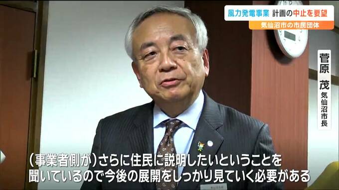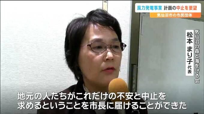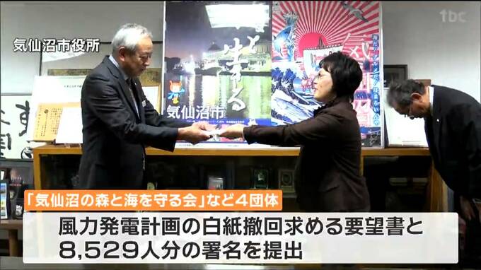 宮城県気仙沼市で計画されている風力発電事業について20日、市民団体が中止を求める要望書を市長に提出しました。