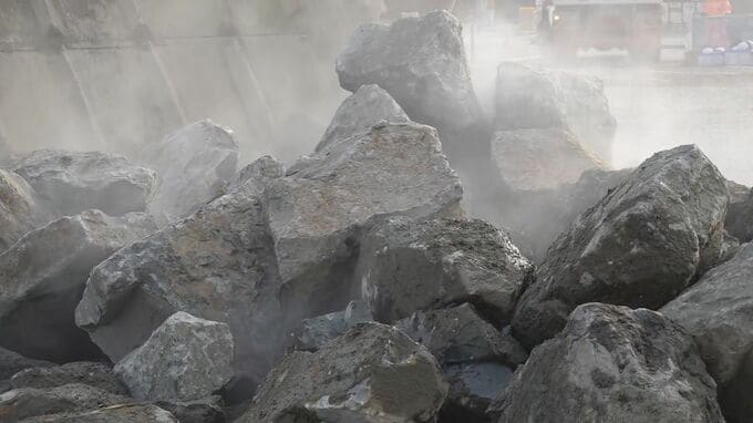 元日の地震で海沿いの護岸が被害を受け、多くの旅館が休業状態の七尾市和倉温泉。20日から復興への一歩となる本格的な復旧工事が始まりました。