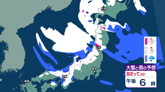 21日~23日にかけて全国的に大雪に警戒を どこに雪が降る?【降雪シミュレーション】全国各地の予想降雪量も 気象庁・国土交通省発表 テレビユー山形 2024年12月20日(金) 20:43 国内 ■22日(日)午後 正午になると、山形と秋田で大雪にの予想。 山形ではさらに雪が続く見込み。 最上地方は特に警戒が必要となりそうです。