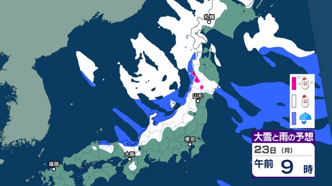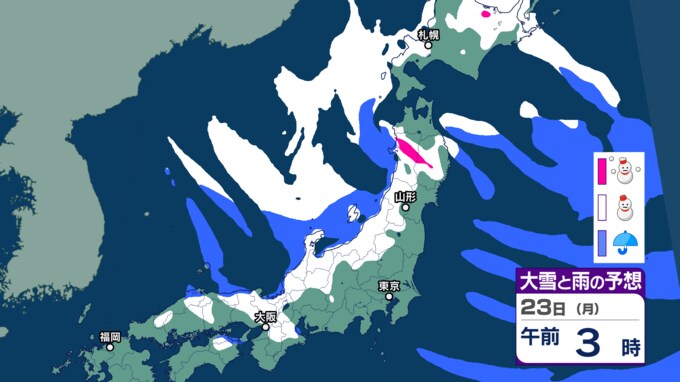 21日~23日にかけて全国的に大雪に警戒を どこに雪が降る?【降雪シミュレーション】全国各地の予想降雪量も 気象庁・国土交通省発表 テレビユー山形 2024年12月20日(金) 20:43 国内 ■23日(月)週明けに影響は 週明けも雪の影響は続きそうです。通勤・通学をする際は時間に余裕を持ってください。