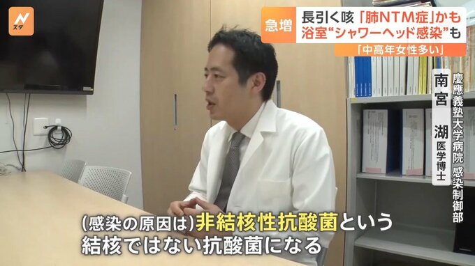 「(感染の原因は)非結核性抗酸菌という結核ではない抗酸菌になる。一方で(肺NTM症は)インフルエンザとコロナと違って慢性の経過になります。そのため咳や痰というのがずっと続くというのが大きな違い」