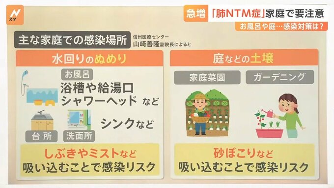 「NTM」という菌は主に水回りや土壌などに生息しています。