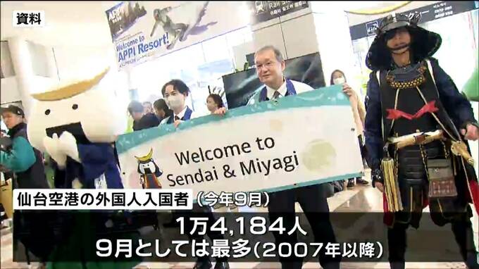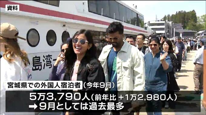 今年9月の宮城県での外国人宿泊者は5万3000人余りとなり、9月としては過去最多となりました。