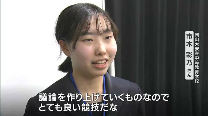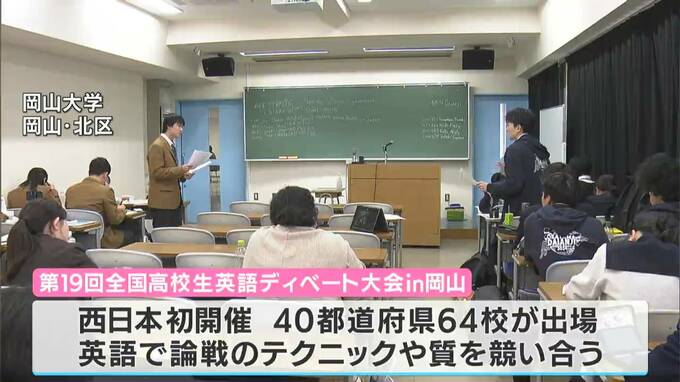 全国の高校生が英語で討論するディベート大会が、西日本で初めて岡山市北区で開かれました。