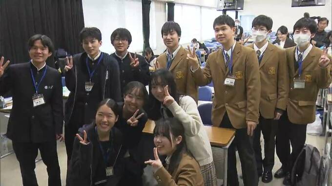 討論のテーマは「原子力発電所をすべて廃止すべきは是か非か」。肯定・否定の立場に割り振られ、激論を交わします。岡山県からは、岡山大安寺など3校が出場。全国の精鋭相手に英語で熱い論戦を繰り広げました。