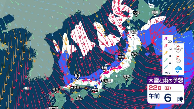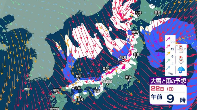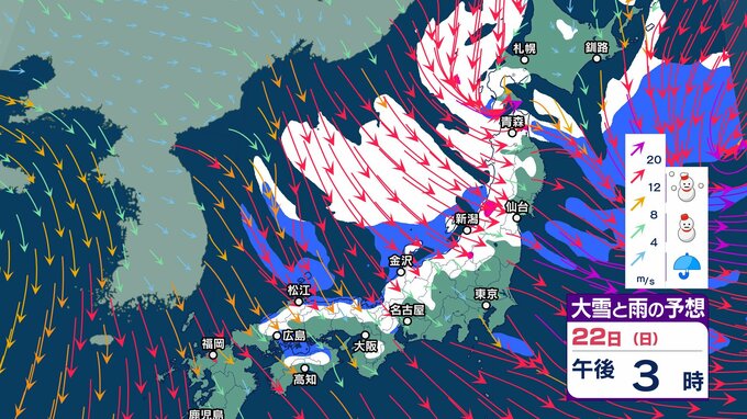 嵐の使者…“強烈寒気” 南下で本州すっぽり 23日にかけ強い冬型の気圧配置【 雪と雨の動き 3時間ごとシミュレーション】日本海側は高波にも警戒 週明けからホワイトクリスマスか チューリップテレビ 2024年12月22日(日) 00:48 国内 天気 大雪と雨のシミュレーション 22日(日)