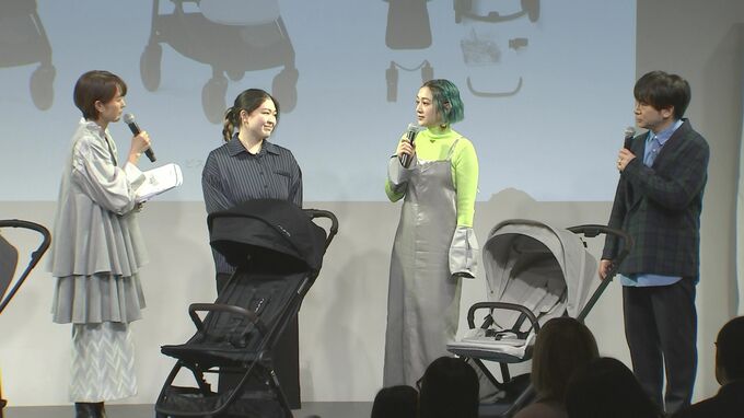 実際にベビーカーを触って体験した濱口さんは、360度車輪が動く機能に“いままでなかった”と大興奮。
