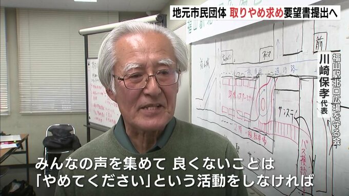 JR福山駅周辺の再整備について、市民団体が開発取りやめを市に求める方針を固めました。