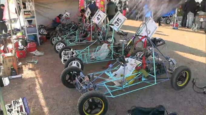 競技は、高校生が自作した排気量50ccのエンジンを搭載したバギーカーで土と砂のコースを走り、スピードと耐久性を競います。生徒たちが創意工夫を凝らしたマシンは轟音を上げてコースを駆け抜けました。
