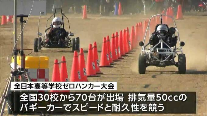 ものづくりを学ぶ全国の高校生が作り上げたバギーカーでスピードと耐久性を競う大会が岡山県浅口市で開かれました。