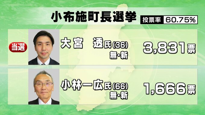 22日に投票が行われた任期満了に伴う長野県小布施町の町長選挙で、新人の大宮透(おおみや・とおる)さんが初めての当選を果たしました。