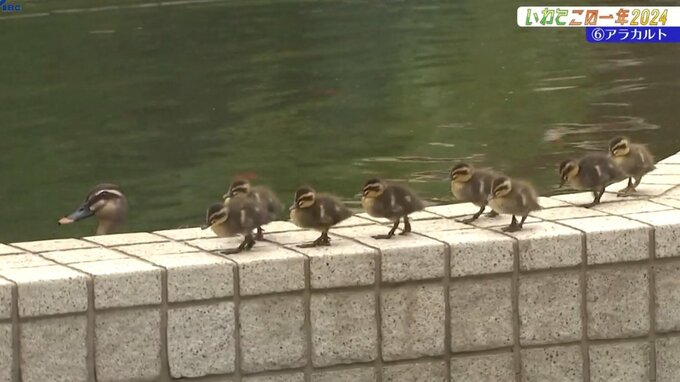 盛岡赤十字病院の中庭で今年もカルガモの赤ちゃんが誕生。