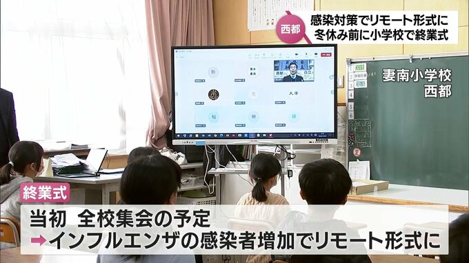 子どもたちの冬休みが始まります。インフルエンザの患者数が増加する中、宮崎県西都市の小学校では、感染対策をとりながら、2学期の終業式が行われました。西都市の妻南小学校では、当初、全校児童が集まる形での…