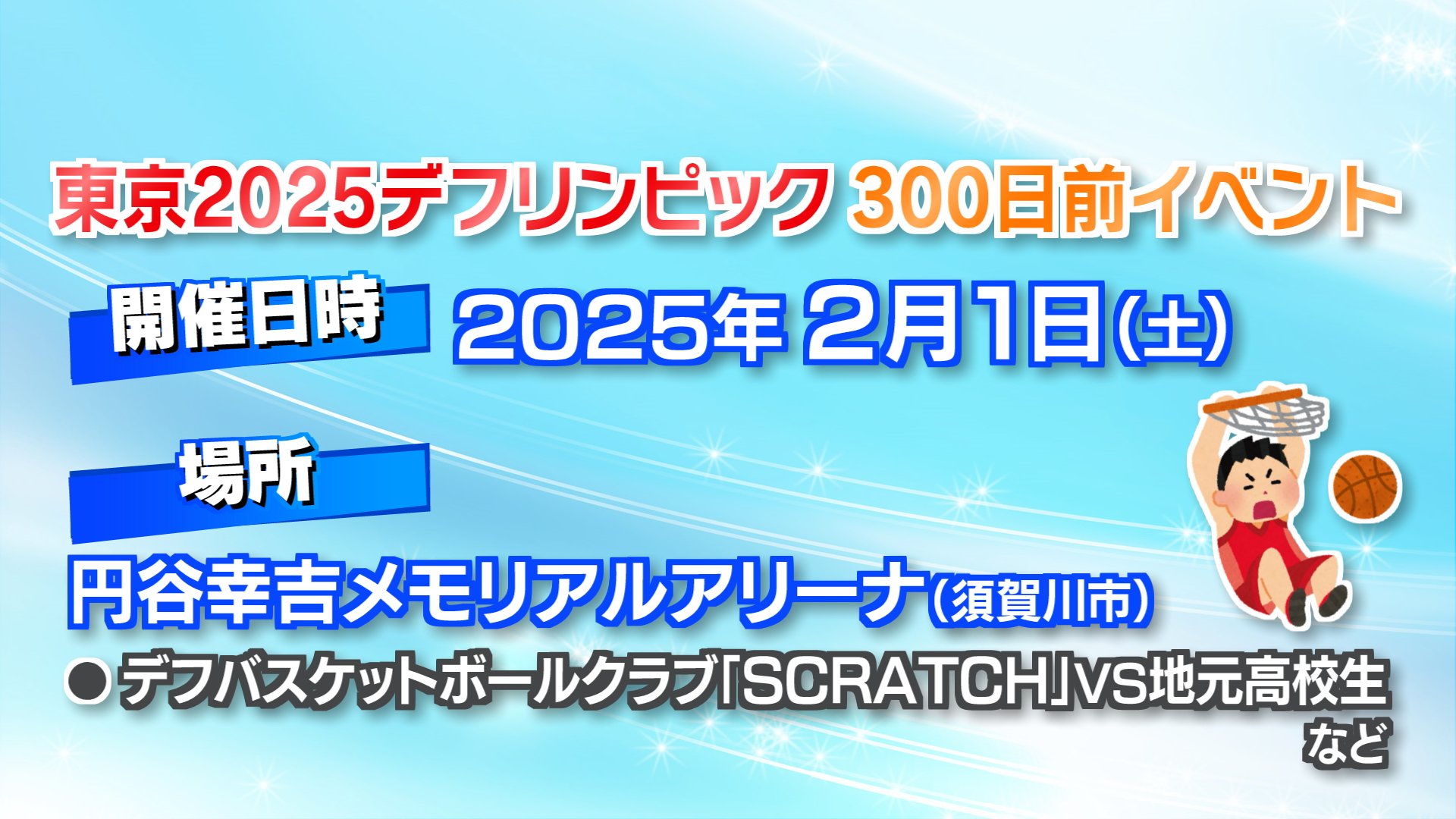 そして、デフリンピック開催300日前イベントが、25年2月1日、須賀川市の円谷幸吉メモリアルアリーナで開催されます。プロバスケB2の福島ファイヤーボンズの試合会場で「デフバスケ」の試合などが行われる予定です。デフリンピック開催に向けた機運が高まってきています。