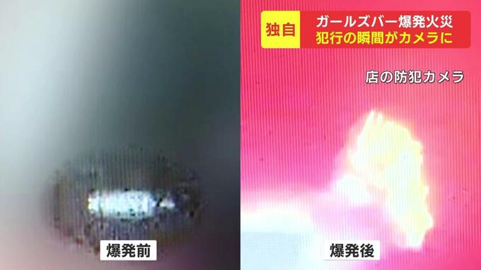 男は店に入る前、ビンのようなもので何かを"玄関マット"に撒く仕草をしていました。逃げ道を奪う目的だったのか…、爆発後、真っ赤な炎が立ち上がっています。