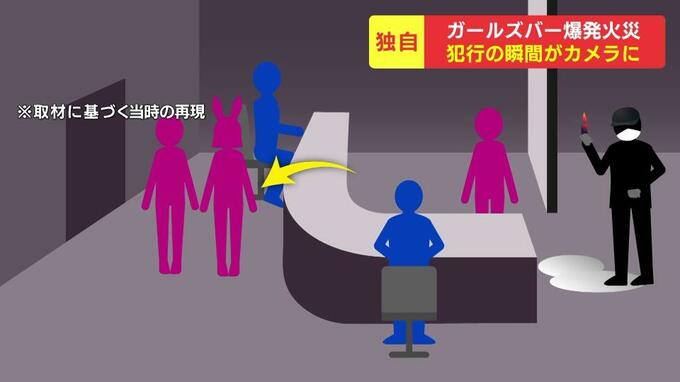 男の不審な動きに気づいた女性従業員たちが、カウンターを飛び越え逃げだした瞬間、男は火を放ちました。