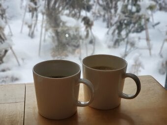 「新幹線のシールとクリスマスカードをお配りしてます」