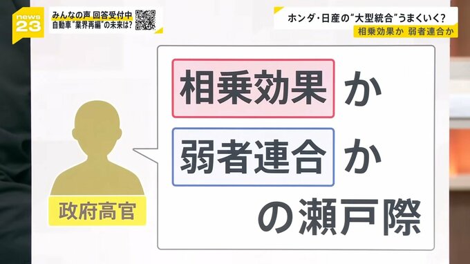 鴻海との提携については、政府部内にも「経済安保の関係から問題が出てくるのではないか」という疑問が出ていたんです。そうしているうちに日産の業績が悪くなったので、ホンダからすると、一種の救済統合のような形で踏み切らざるを得ない局面になってきているんです。