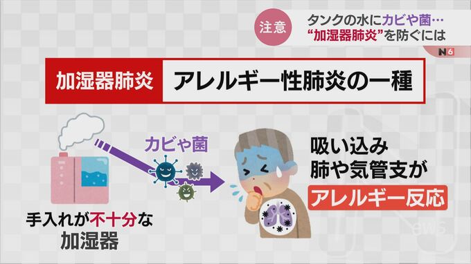 加湿器の管理が悪いとレジオネラ菌などが増殖することがあり菌が原因で肺炎になり、重症の場合、死亡することがあると注意を呼びかけています。