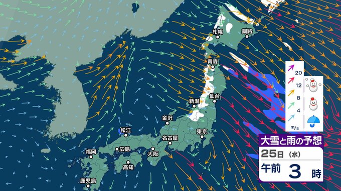 今週末にも嵐の使者 “強い寒気” 南下へ 冬型の気圧配置が強まり日本海側山沿いで大雪のおそれ【2週間天気】元日の太平洋側は晴れ 初日の出拝めそう【 雪と雨の動き 3時間ごとシミュレーション】 チューリップテレビ 2024年12月24日(火) 13:06 国内 天気 大雪と雨のシミュレーション 25日(水)
